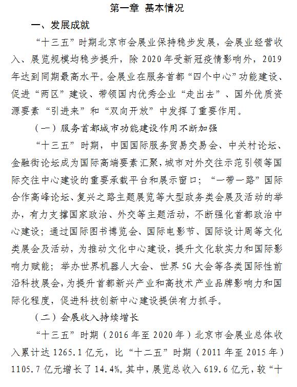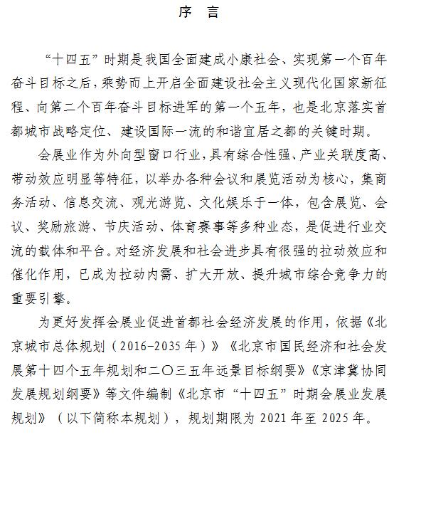 北京市“十四五”时期 会展业发展规划