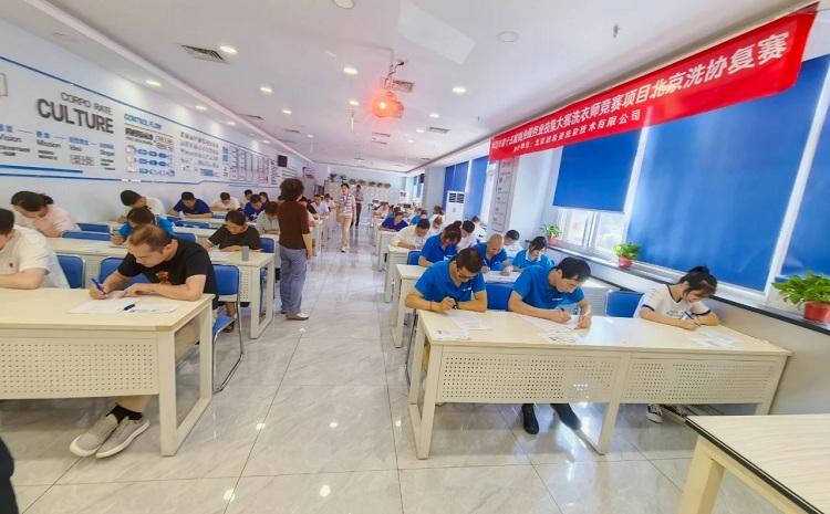洗衣师项目竞赛严格参照《国家职业技能标准》高级工标准执行考核。北京洗协统一组织选手完成理论知识考核与实操技能考核两大环节:理论知识考核重点检验选手对洗衣相关理论的掌握程度,涵盖面料识别、熨烫技巧、设备操作、化料使用等核心内容;实操技能考核包含两项任务,一是在规定时间内完成100%纯棉女士衬衫熨烫,二是去渍操作考核。相较于往届,本次竞赛不仅加深了理论考试深度,还新增去渍考核内容,更全面地检验选手对实操技能的灵活运用与熟练掌握能力。竞赛当天,选手们分别参加了理论知识笔试和实操技能的考核。比赛现场,选手们双手灵活穿梭于零件之间,精准拿起螺丝、熟练使用工具,零件的拼接、线路的连接都一气呵成,没有丝毫卡顿,每一个动作都彰显着长期训练的扎实功底,感受到他们全力以赴的竞赛状态。