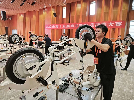 近日,由市商务局主办,市人力资源和社会保障局、市总工会、市妇联会、共青团市委等委办局协办的北京市第十五届商业服务业技能大赛“自行车与电动车装配工”项目市级决赛选拔赛顺利完成。来自雅迪、爱玛、台铃、新日、小牛、九号、绿源、小刀等10个电动车品牌的103名选手参赛。经过激烈角逐,成绩排名前30%的30名优胜选手将晋级决赛。
